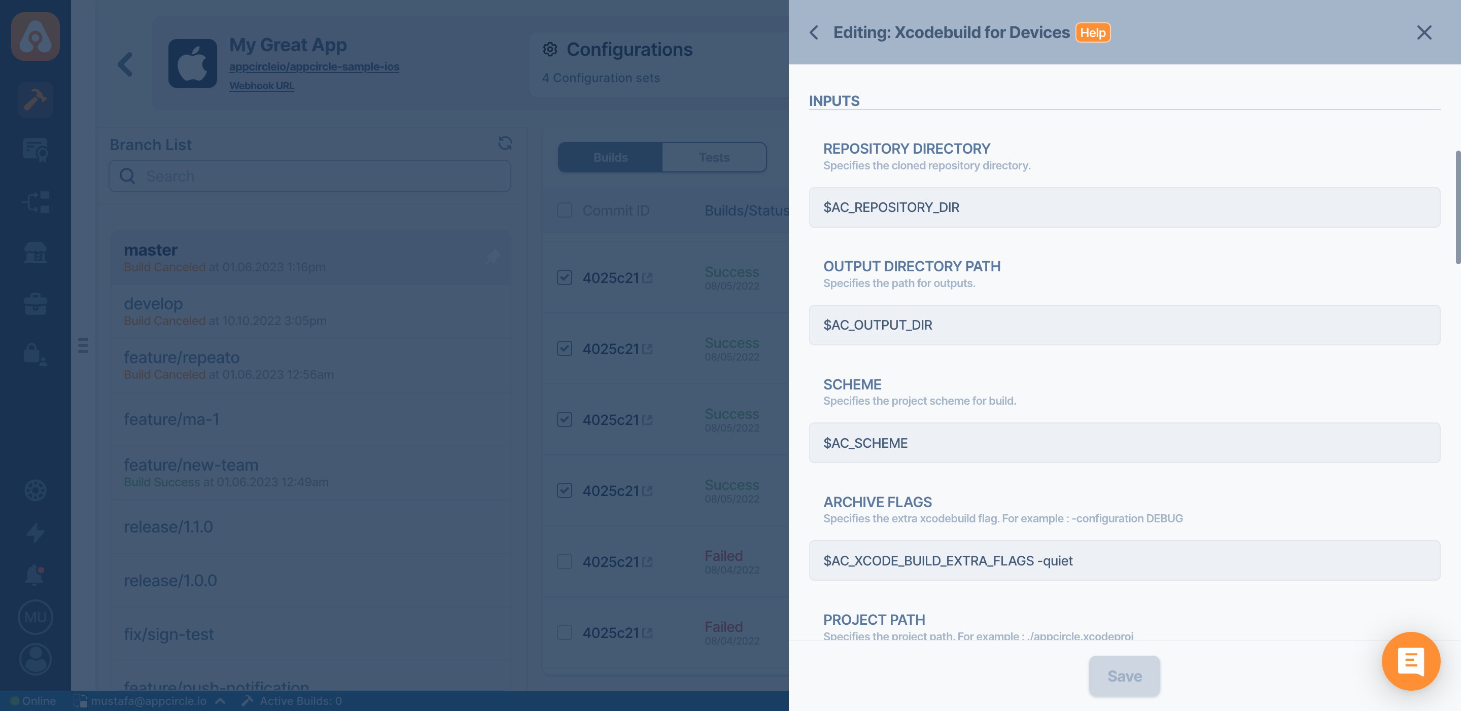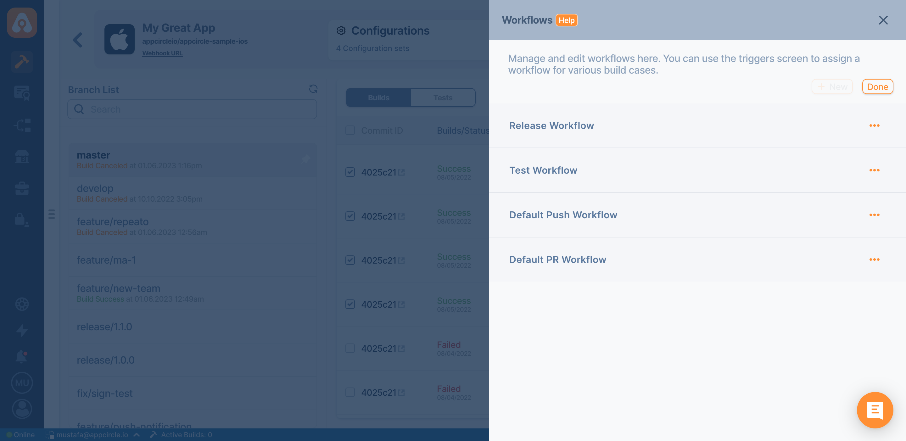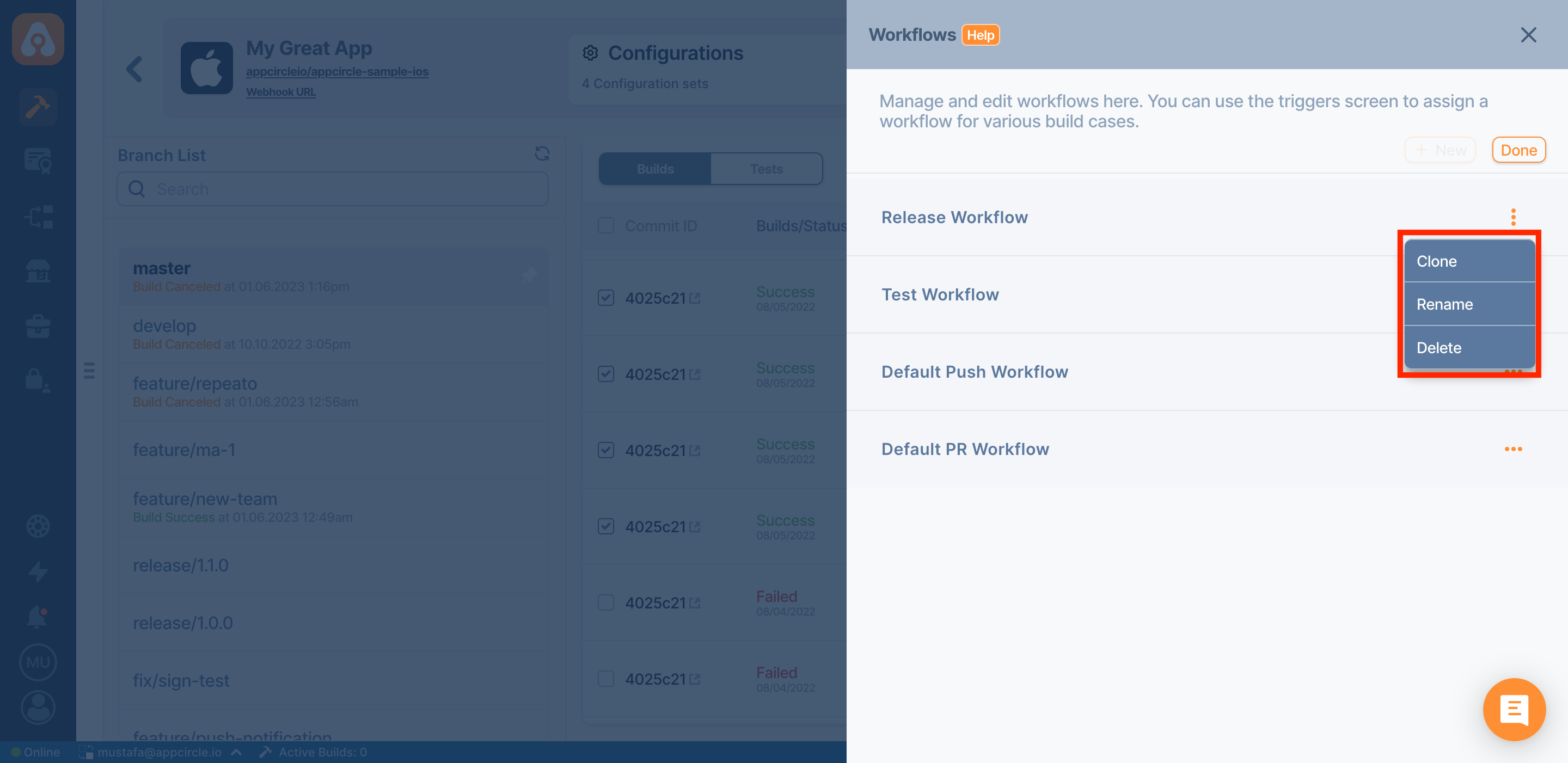 Please note that modifying workflow steps may cause your builds to fail, so utmost care is recommended when editing workflows.